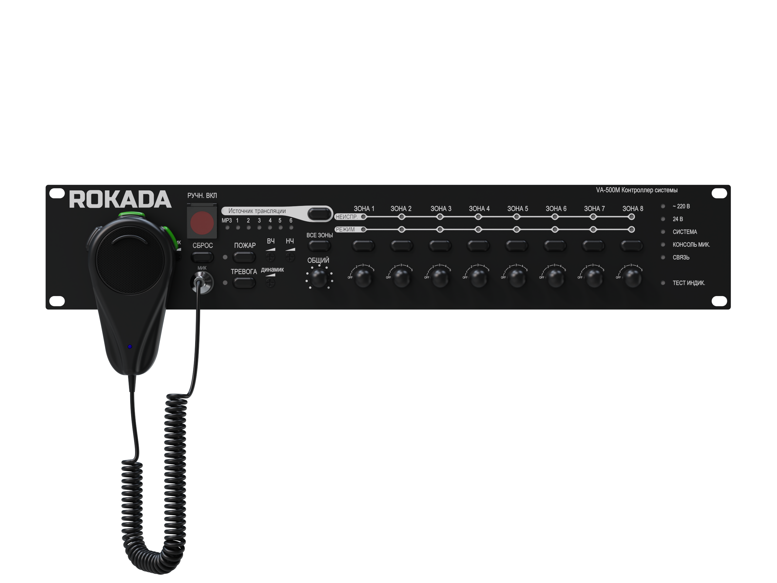 Контроллер системы ROKADA VA-500MКонтроллер системы оповещения 19″ на 8 зон, мощностью 500 Вт, 2U ПодробнееЗадать вопрос