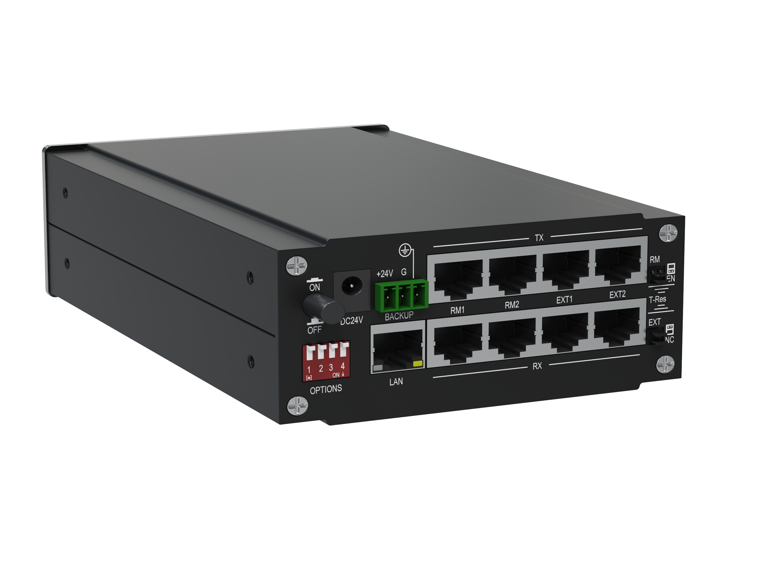 - 8 интерфейсов RJ45 CAN-шины 48 В, сгруппированным по два порта в каждую из четырех групп